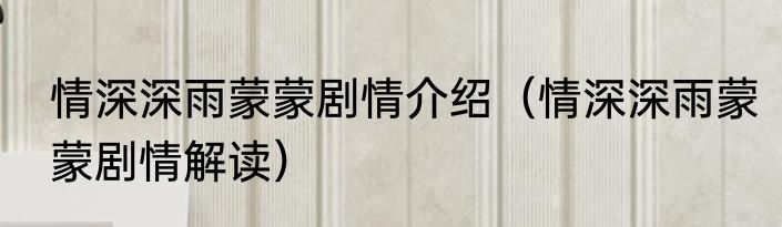 情深深雨蒙蒙剧情介绍(情深深雨蒙蒙剧情解读)