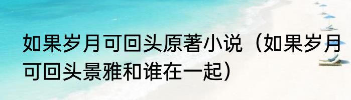 如果岁月可回头原著小说(如果岁月可回头景雅和谁在一起)