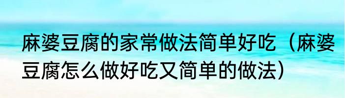 麻婆豆腐的家常做法简单好吃(麻婆豆腐怎么做好吃又简单的做法)