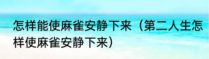 怎样能使麻雀安静下来(第二人生怎样使麻雀安静下来)