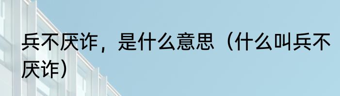 兵不厌诈,是什么意思(什么叫兵不厌诈)