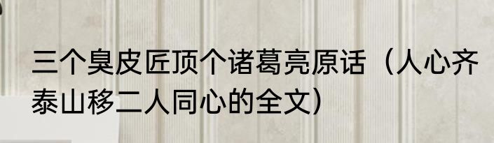 三个臭皮匠顶个诸葛亮原话(人心齐泰山移二人同心的全文)