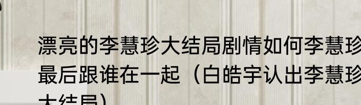 漂亮的李慧珍大结局剧情如何李慧珍最后跟谁在一起(白皓宇认出李慧珍大结局)