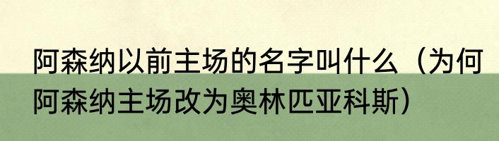阿森纳以前主场的名字叫什么(为何阿森纳主场改为奥林匹亚科斯)