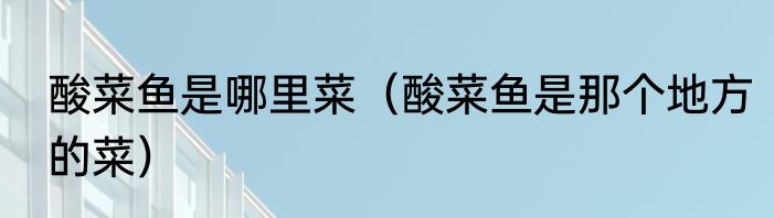 酸菜鱼是哪里菜(酸菜鱼是那个地方的菜)