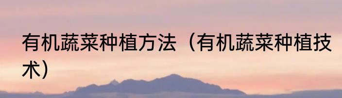 有机蔬菜种植技术?