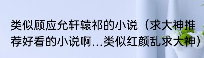 类似顾应允轩辕祁的小说(求大神推荐好看的小说啊…类似红颜乱求大神)