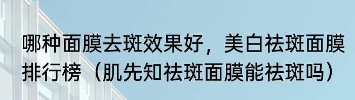 哪种面膜去斑效果好,美白祛斑面膜排行榜(肌先知祛斑面膜能祛斑吗)