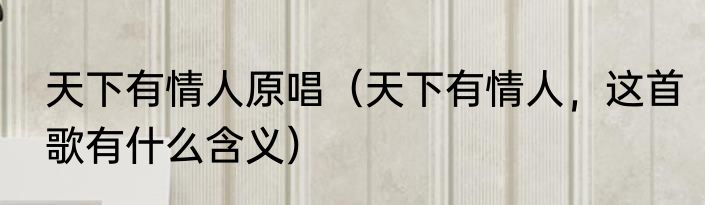 天下有情人原唱(天下有情人,这首歌有什么含义)