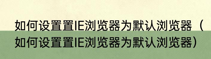 如何设置置IE浏览器为默认浏览器(如何设置置IE浏览器为默认浏览器)