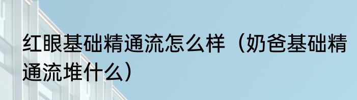 红眼基础精通流怎么样(奶爸基础精通流堆什么)