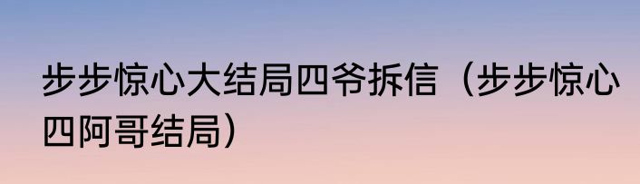 步步惊心大结局四爷拆信(步步惊心四阿哥结局)