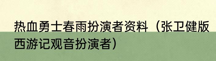 热血勇士春雨扮演者资料(张卫健版西游记观音扮演者)