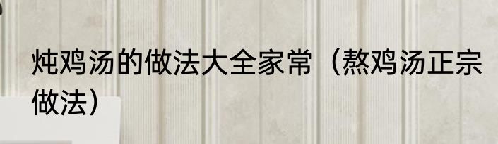 炖鸡汤的做法大全家常(熬鸡汤正宗做法)