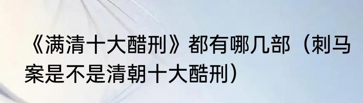《满清十大醋刑》都有哪几部(刺马案是不是清朝十大酷刑)