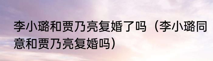 李小璐和贾乃亮复婚了吗(李小璐同意和贾乃亮复婚吗)