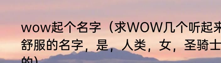 wow起个名字(求WOW几个听起来舒服的名字,是,人类,女,圣骑士的)