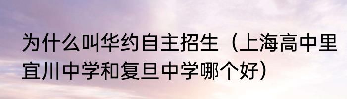 为什么叫华约自主招生(上海高中里宜川中学和复旦中学哪个好)