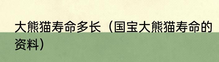 大熊猫寿命多长(国宝大熊猫寿命的资料)