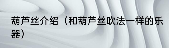 葫芦丝介绍?