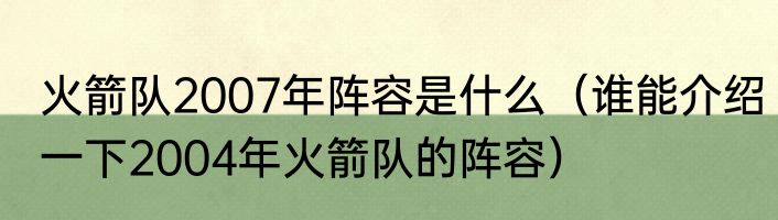 火箭队2007年阵容是什么(谁能介绍一下2004年火箭队的阵容)