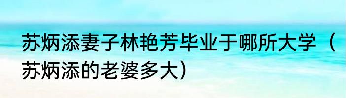 苏炳添是中国内地著名的男子百米短跑运动员,苏炳添的现任妻子是林艳芳,林艳芳,女1977年出生于广东梅州市,毕业于中南大学财经系。