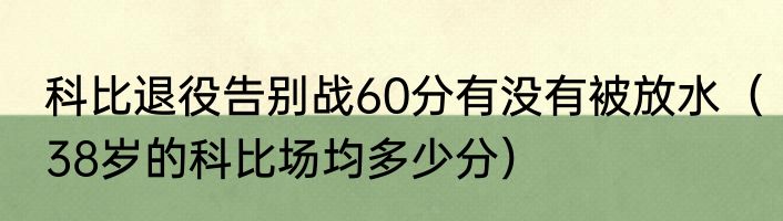 科比退役告别战60分有没有被放水(38岁的科比场均多少分)