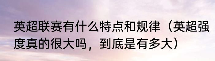 英超联赛有什么特点和规律(英超强度真的很大吗,到底是有多大)