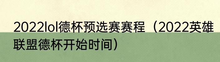 2022lol德杯预选赛赛程(2022英雄联盟德杯开始时间)