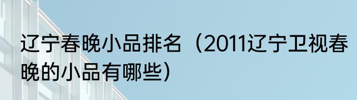 辽宁春晚小品排名(2011辽宁卫视春晚的小品有哪些)