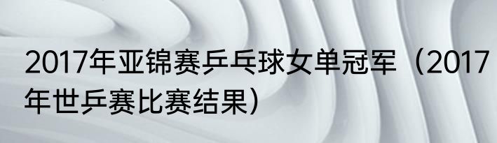 2017年亚锦赛乒乓球女单冠军(2017年世乒赛比赛结果)