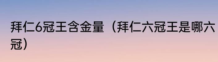 拜仁6冠王含金量(拜仁六冠王是哪六冠)