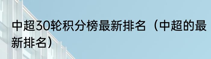 中超30轮积分榜最新排名(中超的最新排名)