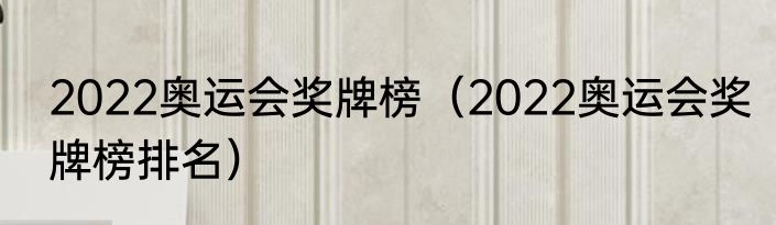 2022奥运会奖牌榜(2022奥运会奖牌榜排名)