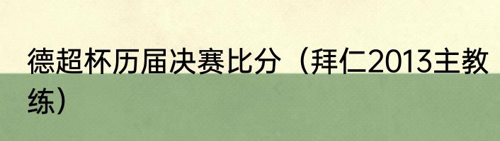 德超杯历届决赛比分(拜仁2013主教练)