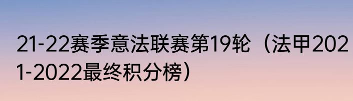 21-22赛季意法联赛第19轮(法甲2021-2022最终积分榜)