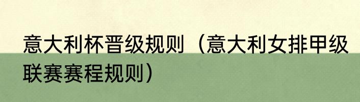 意大利杯晋级规则(意大利女排甲级联赛赛程规则)