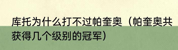 库托为什么打不过帕奎奥(帕奎奥共获得几个级别的冠军)