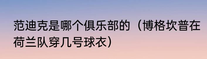 范迪克是哪个俱乐部的(博格坎普在荷兰队穿几号球衣)