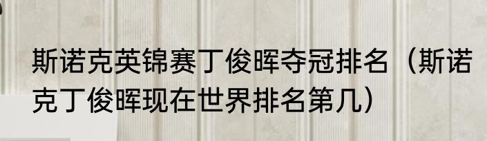 斯诺克英锦赛丁俊晖夺冠排名(斯诺克丁俊晖现在世界排名第几)