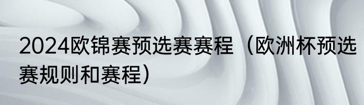 2024欧锦赛预选赛赛程(欧洲杯预选赛规则和赛程)