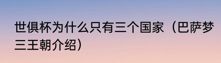巴萨梦三王朝介绍?