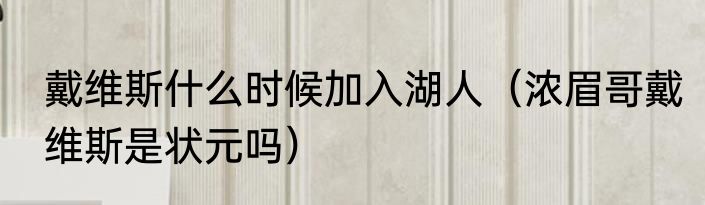 戴维斯什么时候加入湖人(浓眉哥戴维斯是状元吗)