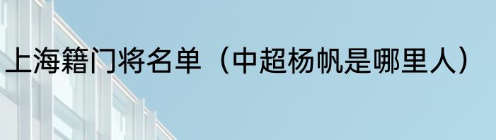 上海籍门将名单(中超杨帆是哪里人)