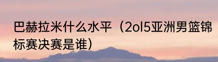 巴赫拉米什么水平(2ol5亚洲男篮锦标赛决赛是谁)