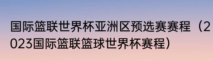 国际篮联世界杯亚洲区预选赛赛程(2023国际篮联篮球世界杯赛程)