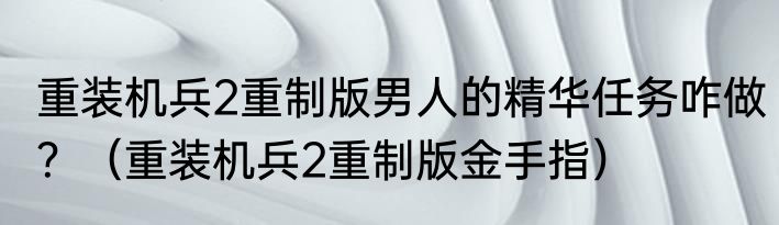 重装机兵2重制版男人的精华任务咋做?(重装机兵2重制版金手指)