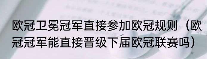 欧冠卫冕冠军直接参加欧冠规则(欧冠冠军能直接晋级下届欧冠联赛吗)