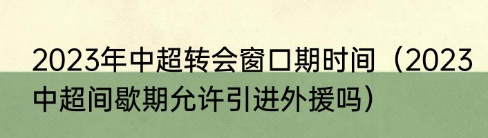 2023年中超转会窗口期时间(2023中超间歇期允许引进外援吗)