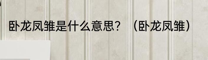 卧龙凤雏是什么意思?(卧龙凤雏)